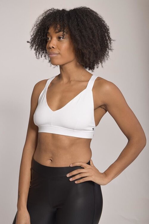 Sportlicher BH-Top mit gekreuzten Trägern hinten, aus biologischem Baumwolljersey.