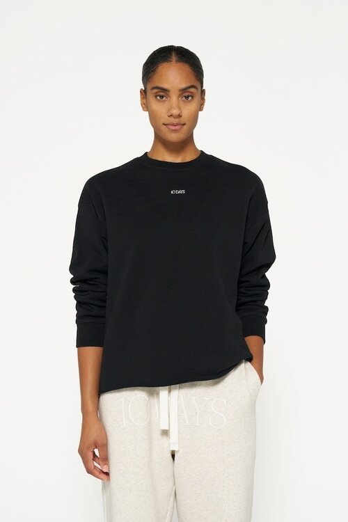 Ein bequemer Pullover mit entspannter Passform, aus Baumwollfleece gefertigt. Der Pullover hat einen Rundhalsausschnitt mit Rippstrickabschluss, eine 10DAYS-Stickerei auf der Brust, einen ungesäumten Saum für einen rohen Look, Rippstrickbündchen, ein kleines Etikett mit Medaille an der Seitennaht des linken Ärmels und eine subtile Streifenstickerei im Nacken. Kombiniere den Pullover mit deiner Lieblingsjogginghose und Sneakers für einen entspannten, alltäglichen Look. Rolle die Ärmel für einen lässigen Look hoch.