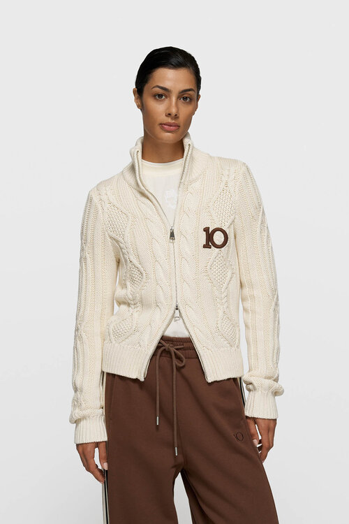 Die 10DAYS cable knit zip Strickjacke in Pearl ist eine schmal geschnittene Strickjacke aus weicher Baumwolle, entworfen mit einer Kabelstruktur und einem luxuriösen Zwei-Wege-Reißverschluss für einen modernen, sportlichen Look.