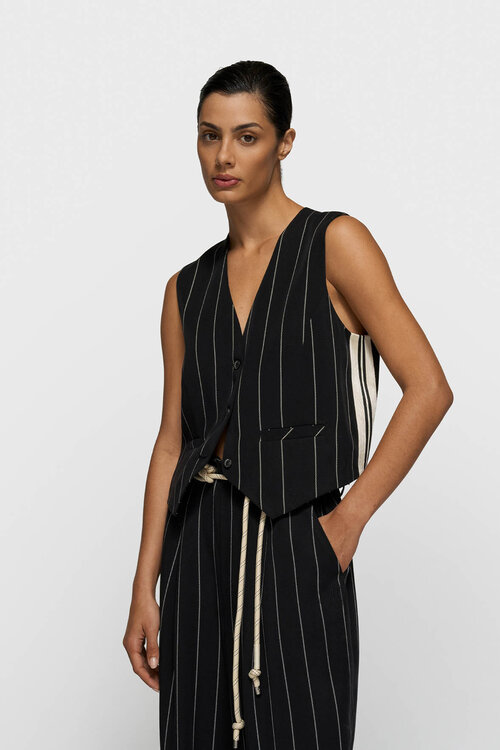 10Days Schwarze Weste mit Nadelstreifen