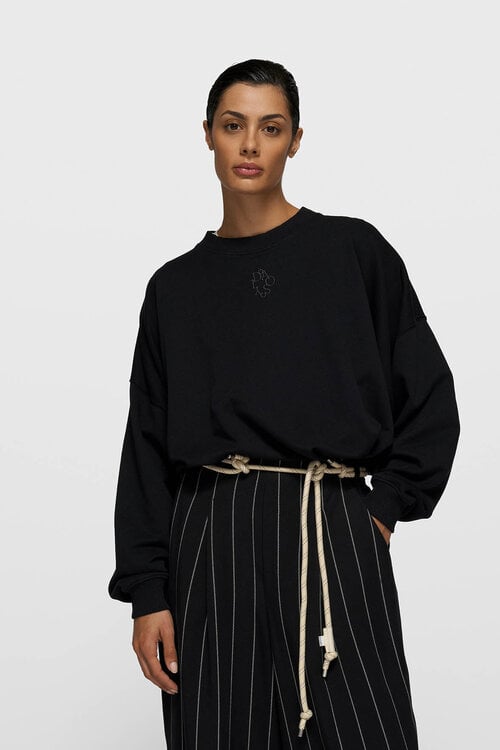 10DAYS oversized Pullover in Schwarz mit Faltendetail und curly 10 Stickerei. Weiches Old-School-Fleece für entspannten Komfort. Shoppen bei Van Dort Mode. Lesen Sie mehr.