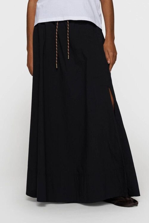 Der 10DAYS Rock Poplin in Schwarz ist ein locker sitzender Maxi-Rock mit einem luftigen und zeitlosen Look. Die weiche Poplin-Baumwolle sorgt für ein leichtes und angenehmes Tragegefühl, während der elastische Bund mit Kordelzug und die subtilen Stickereien den charakteristischen 10DAYS-Stil betonen.