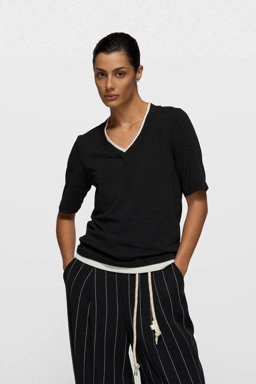 10Days Schwarzes zweilagiges V-Ausschnitt-T-Shirt