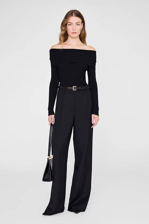 Anine Bing Kira Pullover in Schwarz mit Off-Shoulder-Ausschnitt und Wollmischung. Elegant und zeitlos, jetzt bei Van Dort Mode shoppen. Lesen Sie mehr.