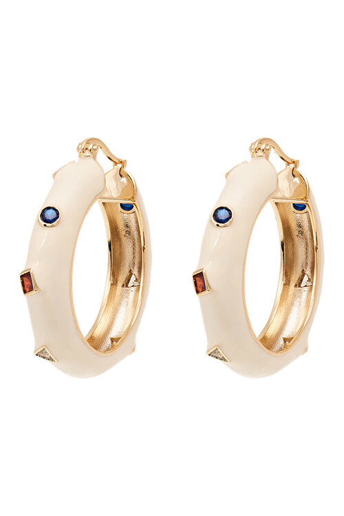 Diese Creolen sind aus Messing mit einer goldplattierten Oberfläche gefertigt und mit Emaille und Zirkonia-Steinen veredelt. :contentReference[oaicite:7]{index=7}