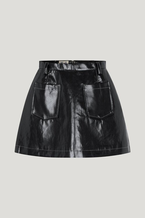 Der Black Snake Skirt ist ein zeitgemäßes Kleidungsstück, das die perfekte Balance zwischen robust und schick findet. Dieser Rock kombiniert einen trendigen Schlangenprint mit einem klassischen Silhouette, was ihn zu einer vielseitigen Wahl für Frauen macht, die gerne ein Statement mit ihrer Kleidung setzen.