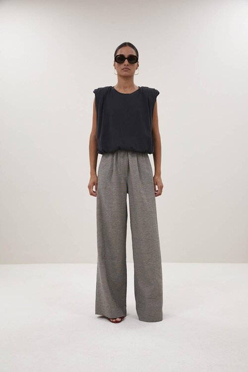 Die benji melange hose von by-bar ist eine hochgeschnittene, weite Hose in einem melierten Grauton. Dank der fließenden Stoffmischung und der modernen Wide-Leg-Passform ist dies die perfekte Hose sowohl für die Arbeit als auch für das Wochenende.