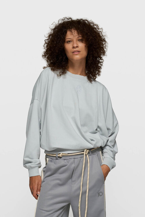10DAYS Oversized Pullover in Clean Blue mit Faltendetail und Curly 10 Stickerei. Weiches Old School Fleece für entspannten Komfort. Van Dort Mode. Lesen Sie mehr.