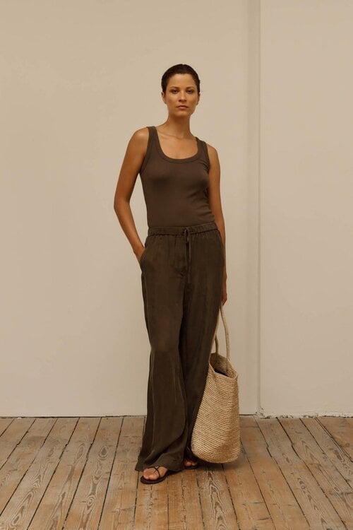 Die Zody’CL von Club L’Avenir ist eine raffinierte Hose mit einem entspannten, luxuriösen Look. Die geraden, weiten Beine und der tiefe Schokoladenton sorgen für einen ruhigen, eleganten Look, der perfekt in eine minimalistische Garderobe passt.