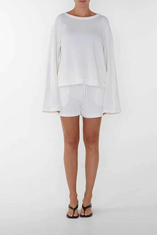 Der Jaya’CL von Club L’Avenir ist ein minimalistisches Oberteil in Off White mit einem entspannten, luxuriösen Look. Die weiten Ärmel und der subtile U-Boot-Ausschnitt verleihen diesem Oberteil einen modernen, mühelosen Look — perfekt für lässige Tage, Reisen oder einen cleanen Set-Styling-Moment.
