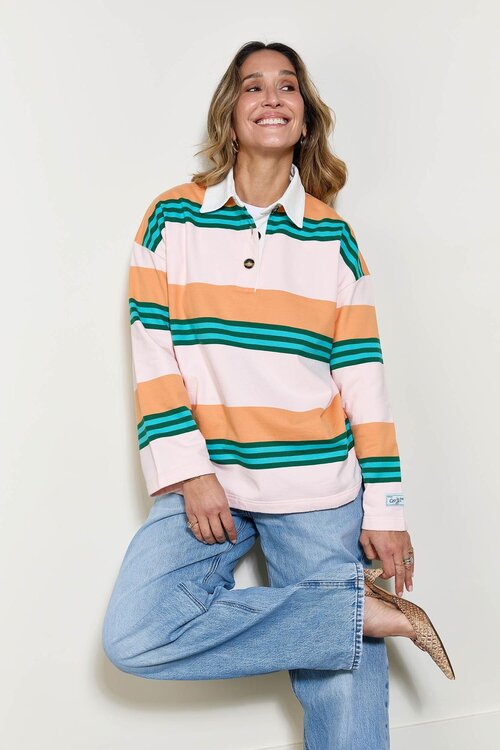 PABLO POLO von Coco y Maria in pink-orange stripe: gestreiftes Polohemd mit Kragen und Knöpfen, aus 100% Bio-Baumwolle. Shoppen bei Van Dort Mode! Lesen Sie mehr.