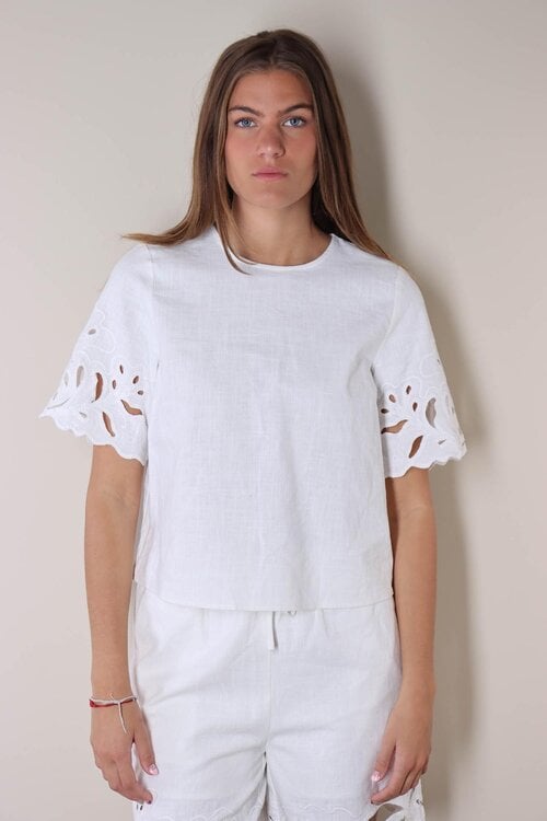 Die Bluse ist vielseitig und lässt sich mühelos sowohl mit lässigem Denim als auch mit einer eleganteren Leinenhose kombinieren.
