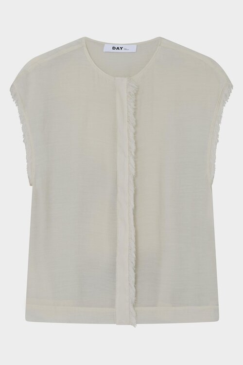 DAY Kua ärmelloses Button-up-Top in Jetstream mit halbtransparenter Optik und Fransen-Details an Schultern und Knopfleiste. Luftig und schick. Von Dort Mode. Lesen Sie mehr.