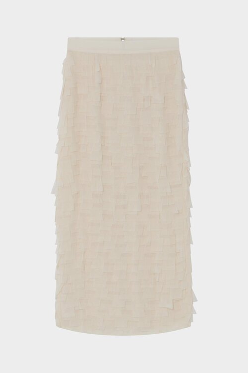 Die square fabric fringe über den ganzen Rock sorgt für eine charmante Bewegung und eine ausgeprägte Ausstrahlung.