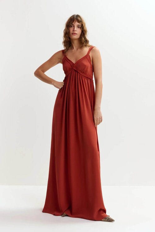 Essentiel Antwerp JACOBEAN verbrannt orange Babydoll-Maxikleid mit Empire-Taille