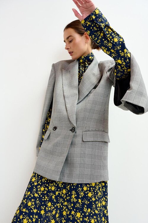 Dieser schwarz/weiß bedruckte oversized Blazer von Essentiel Antwerp ist ein echter Hingucker. Lesen Sie mehr.
