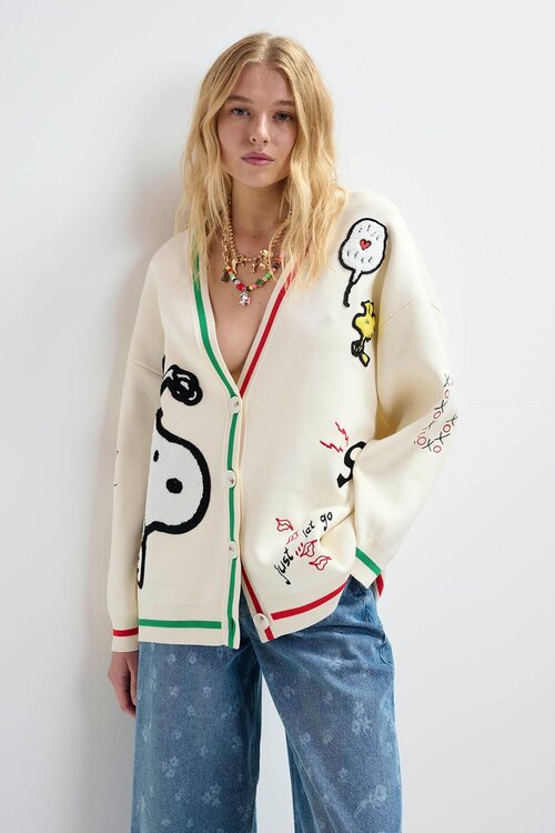 Essentiel Antwerp Off White Snoopy Embo Cardigan