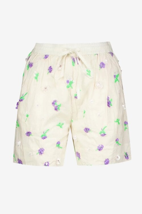 Essentiel Antwerp JELENA weiße Shorts mit Blumenverzierungen