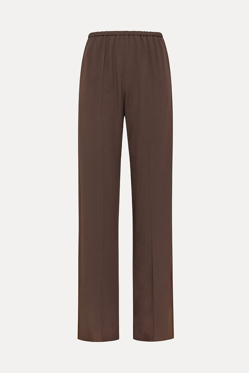 • Dunkelbraune Hose mit subtiler Glanz