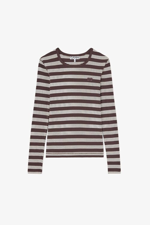 Review Ganni Braunes Langarmshirt gestreift