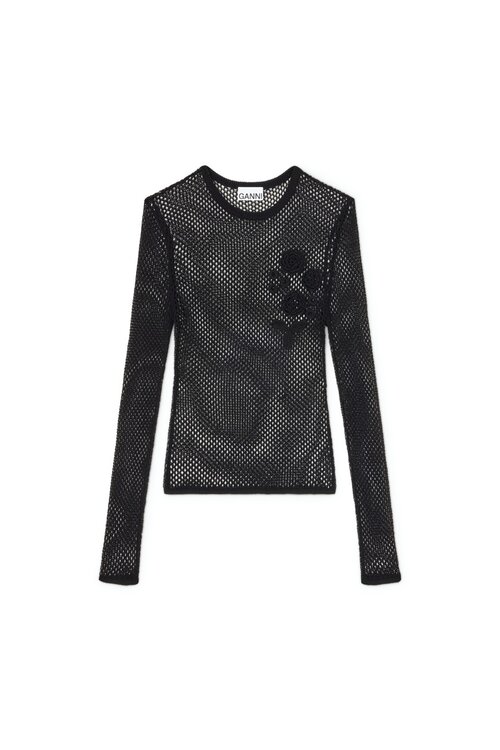 Ganni Schwarzes Mesh-Shirt
