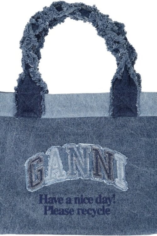 Den GANNI Medium Trapeze Denim Shopper findest du bei Van Dort Mode.