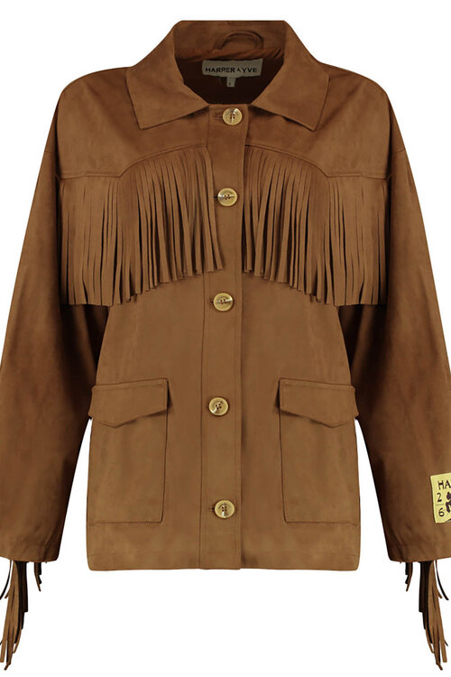 Die Harper & Yve Quinn-JA in Saddle Brown ist ein echter Statement-Mantel mit auffälligen Fransen und einem von Western inspirierten Look. Dank der komfortablen Stretchmischung lässt er sich mühelos über jedes Outfit tragen, von Denim bis Kleid.