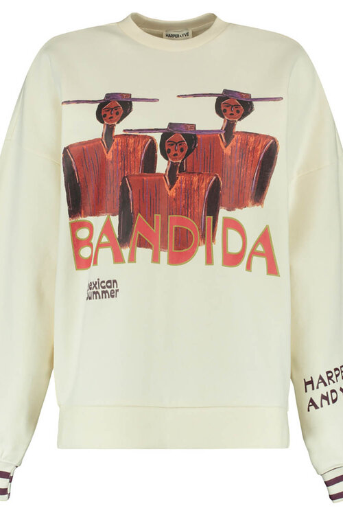 Harper & Yve Bandida-SW Pullover in Ecru mit Statement-Print. 100% Baumwolle, Frühling 2026. Auf Lager bei VAND für €89,99. Lesen Sie mehr.
