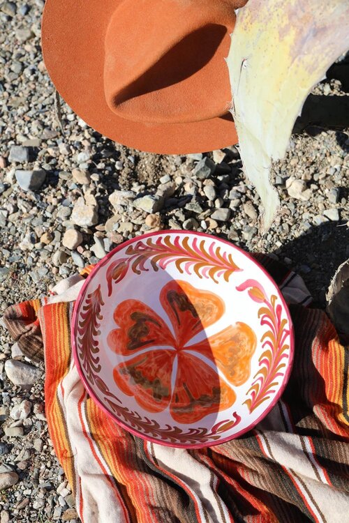 Die Harper & Yve Schale LL X H&Y verleiht Ihrem Tisch oder Ihrer Küche sofort ein farbenfrohes und ausdrucksstarkes Aussehen. Diese handgefertigte und handbemalte Schale aus der Zusammenarbeit mit Lenta Living kombiniert handwerklichen Charme mit einem verspielten Design, das sofort ins Auge fällt.