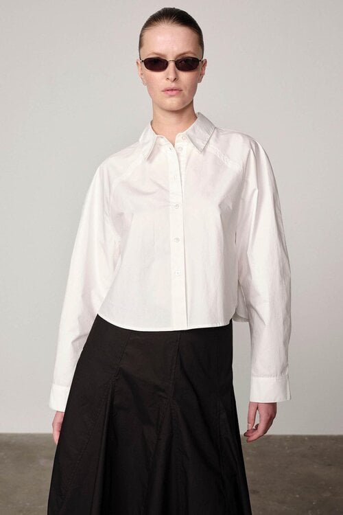Das Elsie Shirt ist eine moderne Interpretation des klassischen weißen Hemdes. Die cropped Länge und die leicht übergroße Passform sorgen für einen zeitgemäßen Look mit einer raffinierten, minimalistischen Basis.