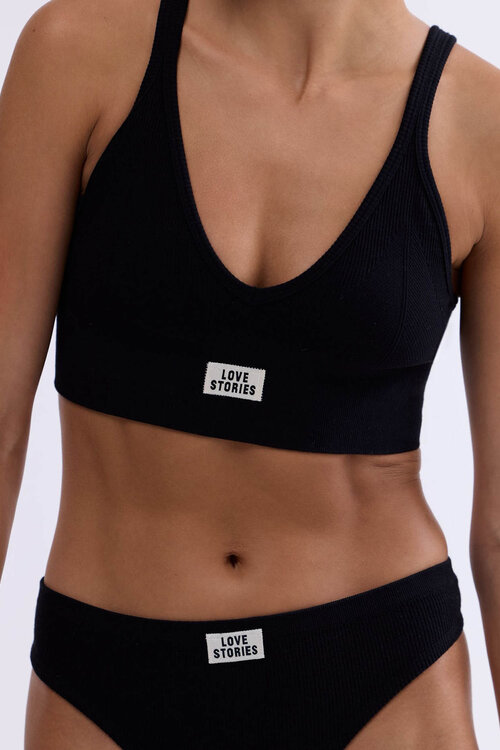 Das Love Stories Posey + Lima Lingerie-Set in Schwarz kombiniert Komfort mit einem femininen, modernen Look. Dieses Set besteht aus einem ungefütterten Bralette und einem passenden Tanga, ideal für täglichen Tragekomfort und leichte Bewegungen.