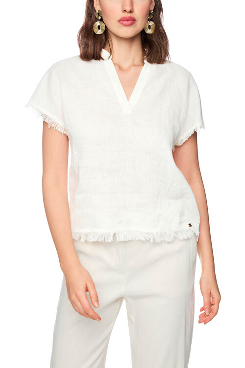 Marc Cain Blusenshirt in hellem Ecru mit Leinen und Baumwolle