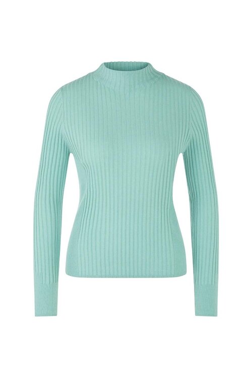 Fein gerippter Pullover in Soft Teal von Marc Cain Sports. Woll- und Kaschmirmix, schlanke Passform und nachhaltig. Lesen Sie mehr.