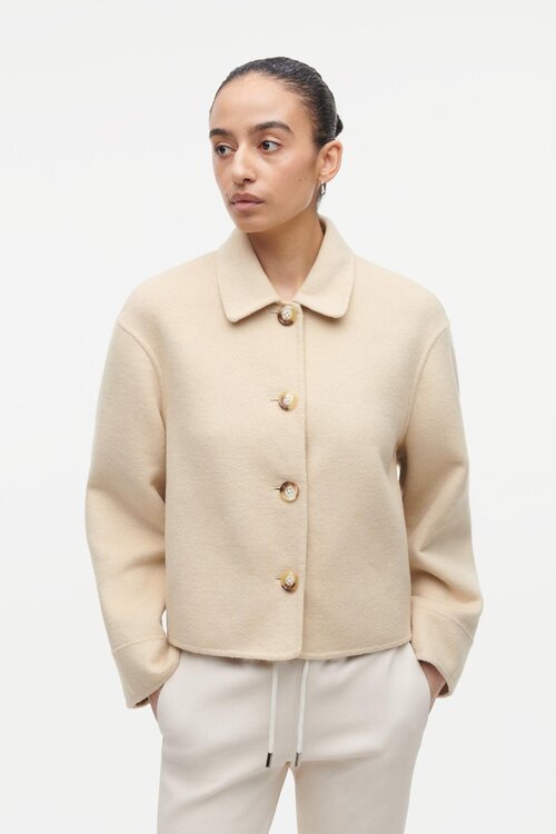 Die NICOLINA Wolljacke von Studio AR in Butter ist eine kurze, schlichte Jacke mit geraden Linien: perfekt für müheloses Layering mit einem modernen, zeitlosen Look.