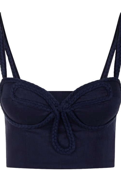 Die tiefe Marinefarbe und der elegante Schnitt machen dieses Top zu einer vielseitigen und zeitlosen Wahl.