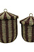 Set van twee manden met deksel van VAND. Lifestyle, uitgevoerd in een gestreept patroon in naturel en bruin tinten.